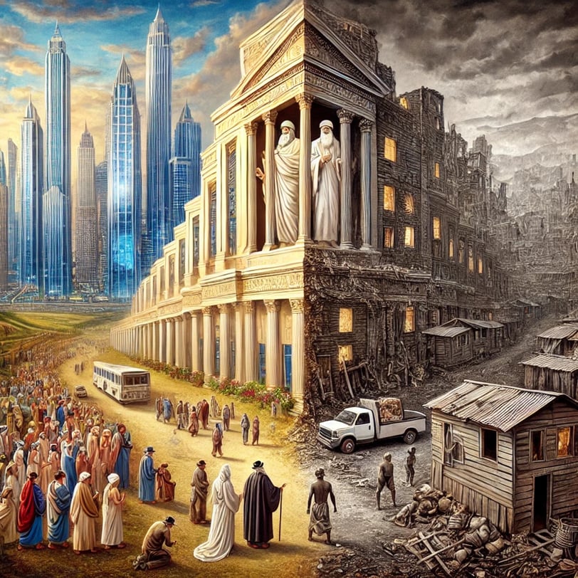 In a land of contrasts, where vast wealth and grinding poverty coexisted, the words of an ancient prophet named Amos echoed through the hearts and minds of the people. His message, written long ago, held a timeless truth that continued to resonate through the ages.